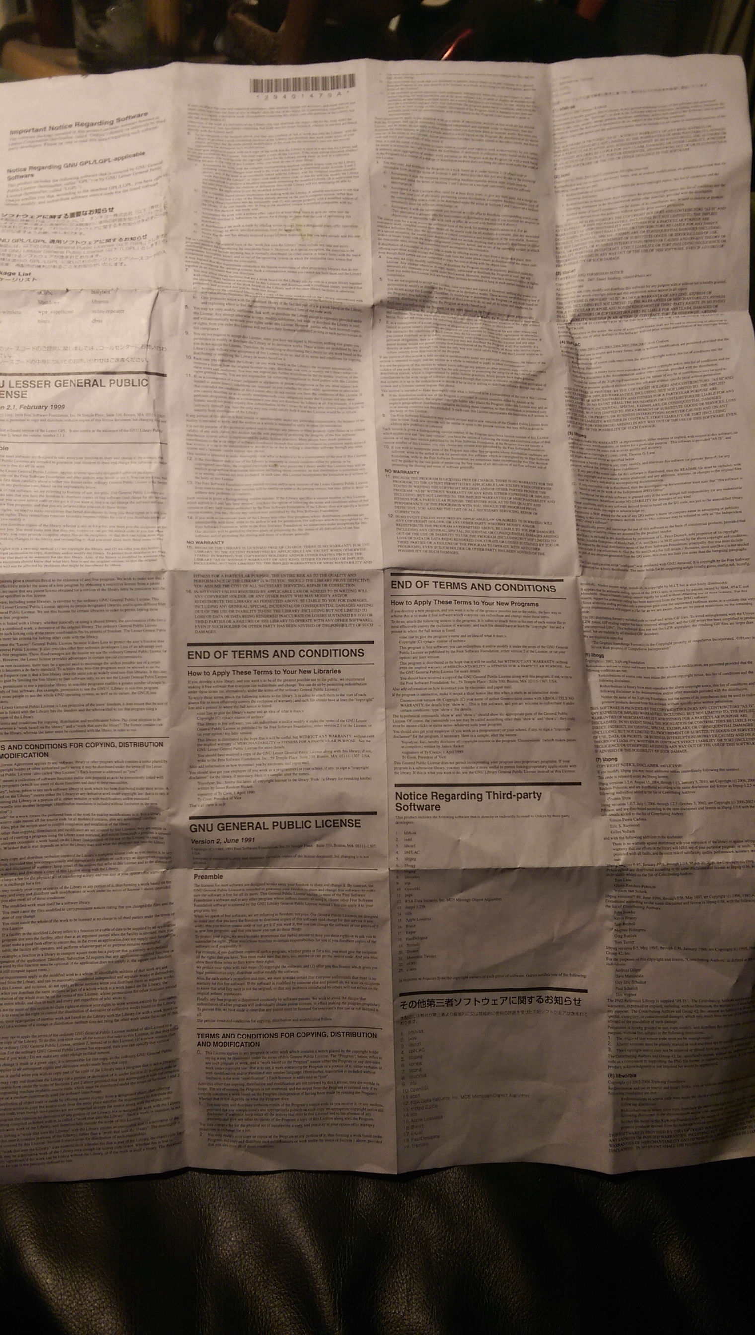 Onkyo CompliesLast month I bought an amazing gadget that is easily my most favorite of the decade. Before last month, I was barely aware this product category existed until I browsed the “Home Audio” section at PC Richards while looking for a replacement vacuum cleaner. I noticed that many of the receivers had ethernet jacks and also supported wi-fi, bluetooth, hdmi and USB. They boasted compatibility with internet audio streaming services, home media libraries, as well as any bluetooth-enabled media collection. Brought to all of us thanks to Free and Open Source Software. The Onkyo TX-NR626 looks almost identical to a stereo receiver you could have bought from Onkyo in the 80s and 90s. In fact, the chases is the same, save for a few extra buttons, and the form factors of the inputs/outputs in the back. A 95W per channel, supporting 7.2 channels, this sucker packs a meaner punch than my UWS apartment (or, more accurately, my neighbors) can stomach. But don’t let it’s outer shell fool you. But, the guts of this gadget have been updated for the 21st century, with flair.